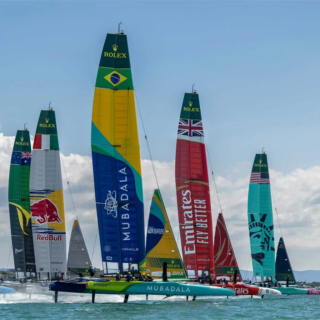 Den zwölf Crews gehören die weltbesten Seglerinnen und Segler an. Sie steuern baugleiche Katamarane mit Foils und Starrflügeln, die sich über die Wellen erheben und Geschwindigkeiten von 50 Knoten (nahezu 100 km/h) erreichen können. Die Rennen dauern dabei nicht länger als 15 Minuten. Mit hochmodernen Booten, die hervorragende Leistungen liefern, definiert die Rolex SailGP Championship die Welt des Segelsports neu. Die Segelboote scheinen regelrecht zu fliegen und tragen die Flaggen der Nationalstaaten, die sie vertreten. Sie bilden die schnellste Flotte in der Geschichte.